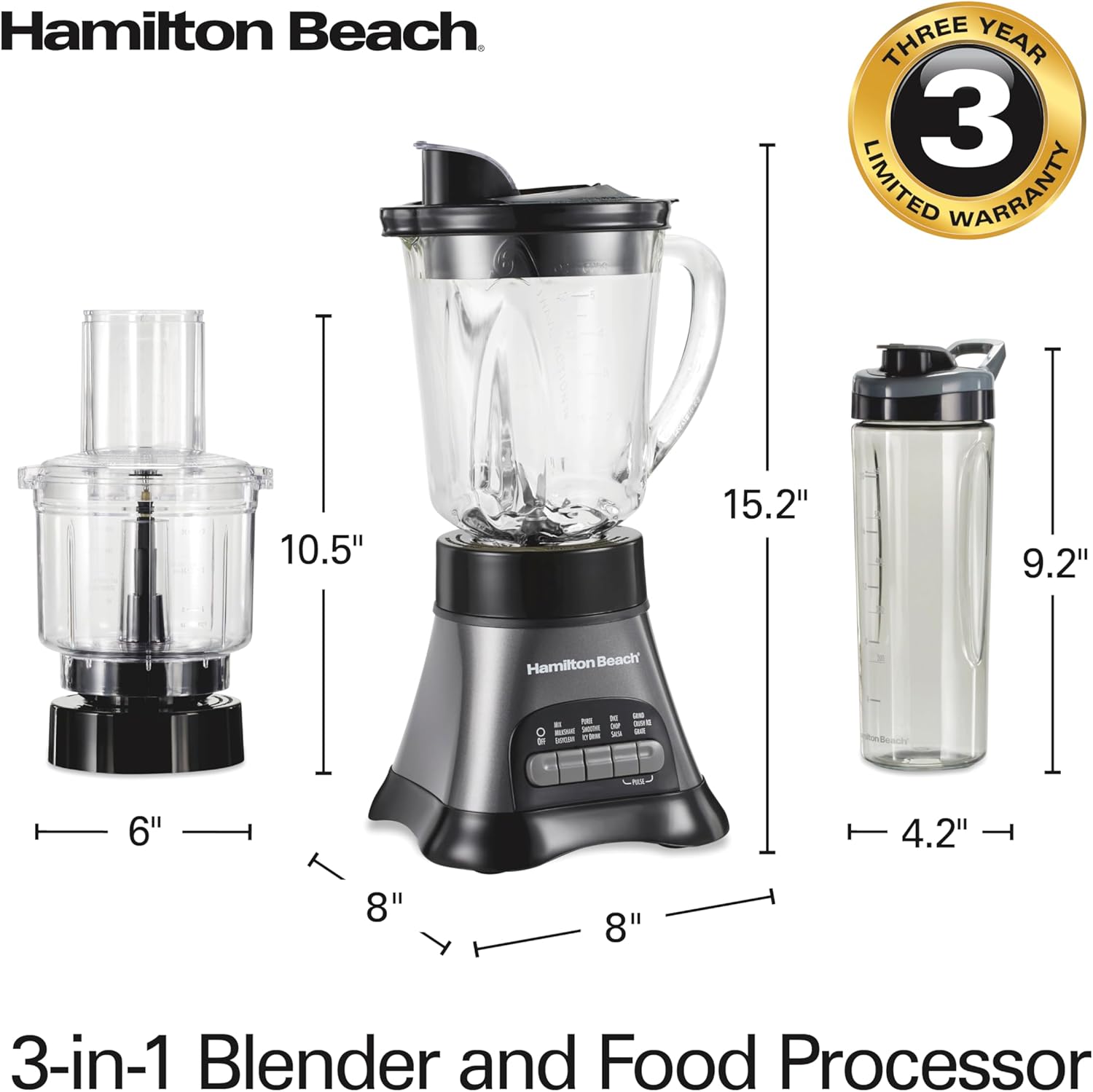 Hamilton Beach 3-in-1 Blender & Food Processor Combo | 700W Power, 40oz Glass Jar, 3-Cup Chopper & To-Go Cup – Perfect for Smoothies, Shakes & Meal Prep (Model 58163)