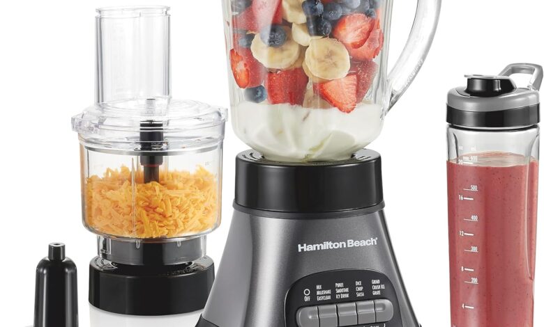 Hamilton Beach 3-in-1 Blender & Food Processor Combo – 700W Power, 40oz Glass Jar, 20oz Travel Cup & 3-Cup Chopper for Smoothies, Shakes & More